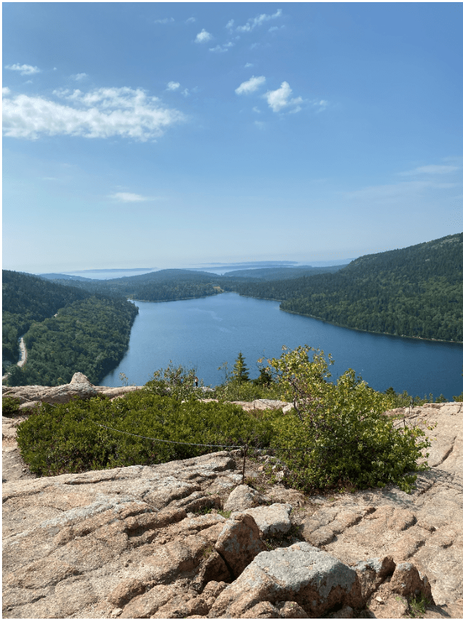To be honest, the morning of the hike I was going with the intention of doing the workaround path to the top (Bowl Trail) to avoid the Beehive (mostly because I didn’t think I could climb up) – but as I came across the sign to go up, I decided to go for it.  And I’m so happy I did because that trail was so much fun! Full disclosure, I am not a risk averse person, so it is not for the faint of heart.  It is a lot of rock scrambling and climbing up iron rungs, but the views at the top are incredibly worth it.  Once up there, we took a quick break and then continued towards Gorham Mountain, which was a bit rocky but a fun trail.  The entire trail is 3.5 miles, and it takes you back to the ocean path, where you’ll be able to easily take pitstop at Sand Beach.  I wasn’t brave enough to hop into that freezing water (my partner was).